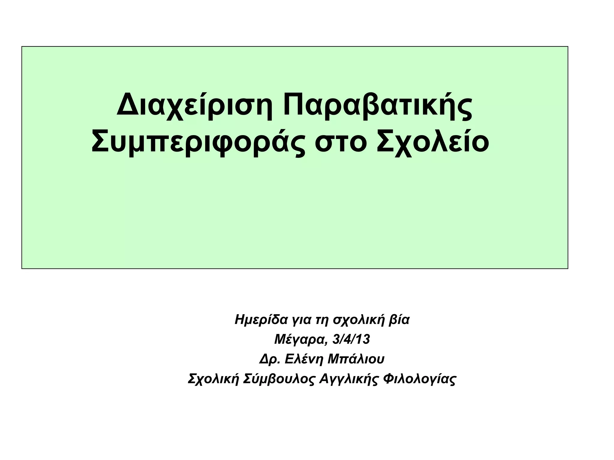 • Οι ανεπιθύμητες μορφές συμπεριφοράς