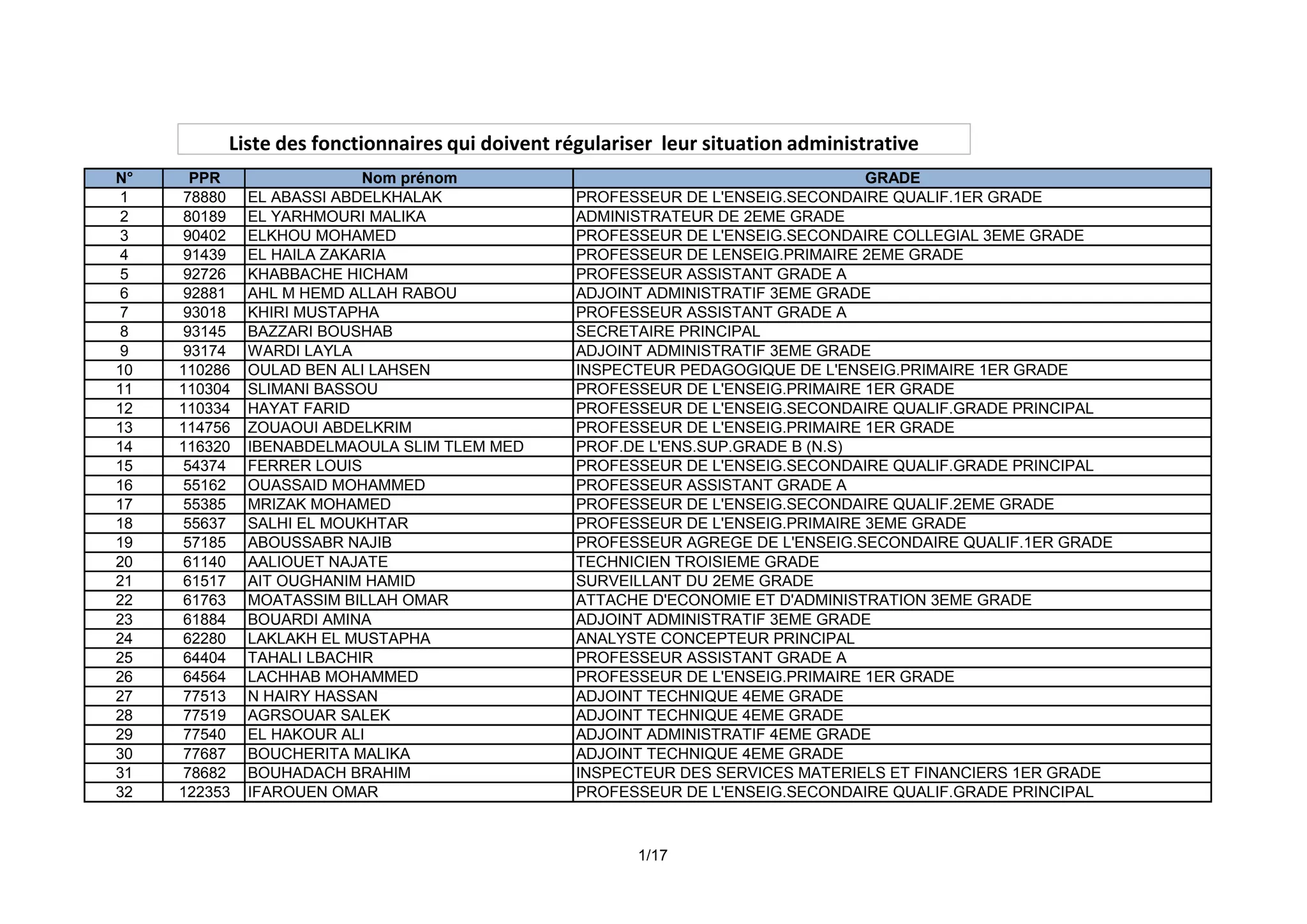 Liste des fonctionnairesqui doivent régulariser leur situation administrative