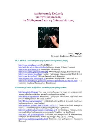 http://mathsforyou.gr/index.php (Ιστότοπος με ενδιαφέροντα θέματα Μαθηματι-