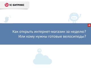 Документ описывает процесс открытия интернет-магазина за короткий срок, подчеркивая выбор ниши, важность запуска с нулевыми затратами, а также оптимизацию работы через интеграцию с 1С. Упоминаются преимущества готовых решений и возможность быстрого старта с минимальными вложениями. Также представлены советы по увеличению продаж и улучшению дизайна магазина.