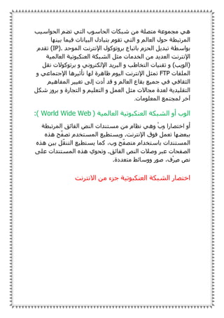 The document discusses the evolution of the internet from its origins as a US military network called ARPANET to its current form. It developed communication protocols like TCP/IP that allowed computers to connect globally and share information through applications like FTP and the World Wide Web, which allows for sharing of multimedia web pages through browsers and websites. The internet has become a major part of modern society and business through connecting computers worldwide.