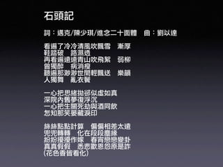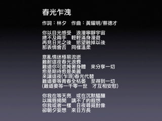 The document appears to be a biography of Simon Yam, mentioning that he began acting in 1975 and had roles in films in 1974 and 1975. It then discusses some of his other acting roles and films from the 1980s to the 2000s. Interspersed are lyrics possibly from a love song in Chinese, as well as other details about his early life and career.