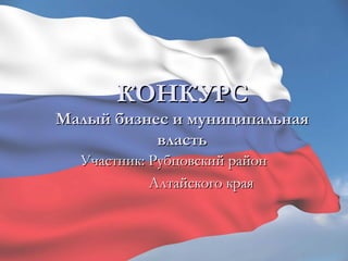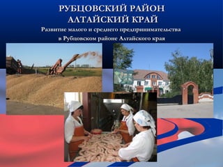 Документ описывает развитие малого и среднего предпринимательства в рубцовском районе Алтайского края, включая статистику по количеству предприятий и работникам. Программа поддержки малого бизнеса на 2013-2015 годы направлена на создание условий для развития предпринимательства и финансовую поддержку. В 2012 году проведено множество мероприятий для поддержки и информирования предпринимателей, включая семинары и выставки.