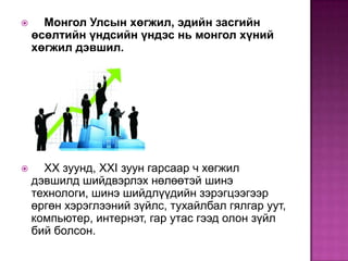 хөгжүүлнэ. Ядуу зүдүү байхгүйн тулд монгол ѐс