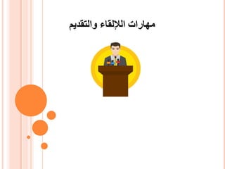 يتناول المستند مهارات الإلقاء والتقديم بشكل شامل، مشيراً إلى أهمية التحكم في الصوت والتواصل اللفظي وغير اللفظي. كما يسلط الضوء على عناصر التصميم والإعداد الضرورية لعروض تقديمية فعالة، بالإضافة إلى توضيح دور النبرات وعلامات الترقيم في تحسين الفهم أثناء العرض.