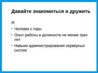 Документ обсуждает использование виртуализации, акцентируя внимание на различных системах, таких как OpenVZ и KVM, и их интеграции с файловыми системами ZFS и Btrfs. В тексте рассмотрены проблемы, возникшие при внедрении этих технологий, а также предложены пути их решения и оптимизации. Затрагиваются важные аспекты, такие как управление образами виртуальных машин, производительность PostgreSQL и отношение к различным версиям ядер Linux.