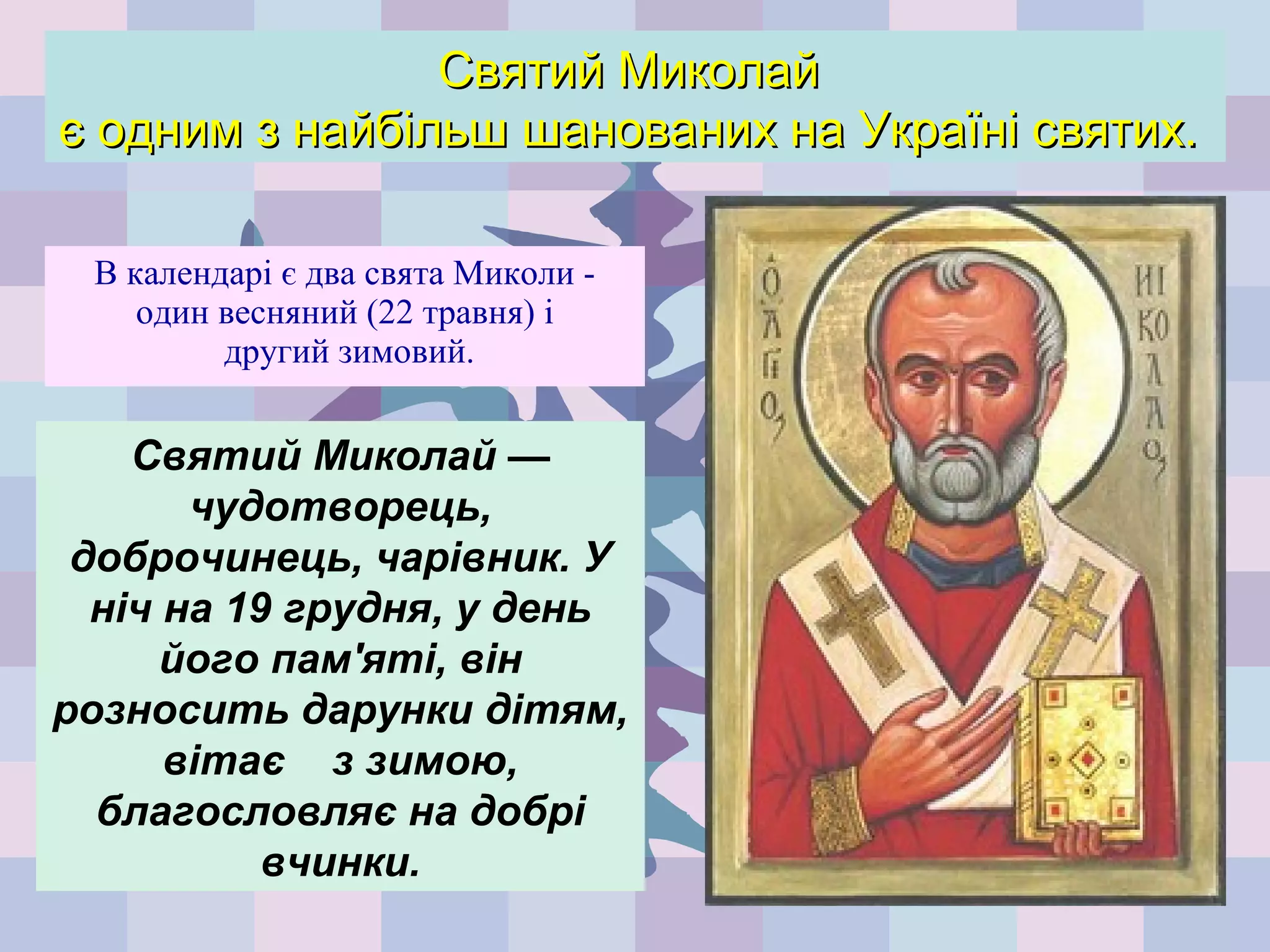 єодним з найбільш шанованих на Україні святих.є одним з найбільш шанованих на Україні святих.