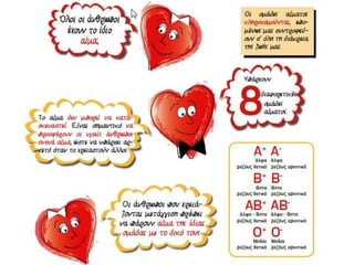 Κάθε άνθρωποςανήκει σε μία από τις οκτώ ομάδες αίματος: