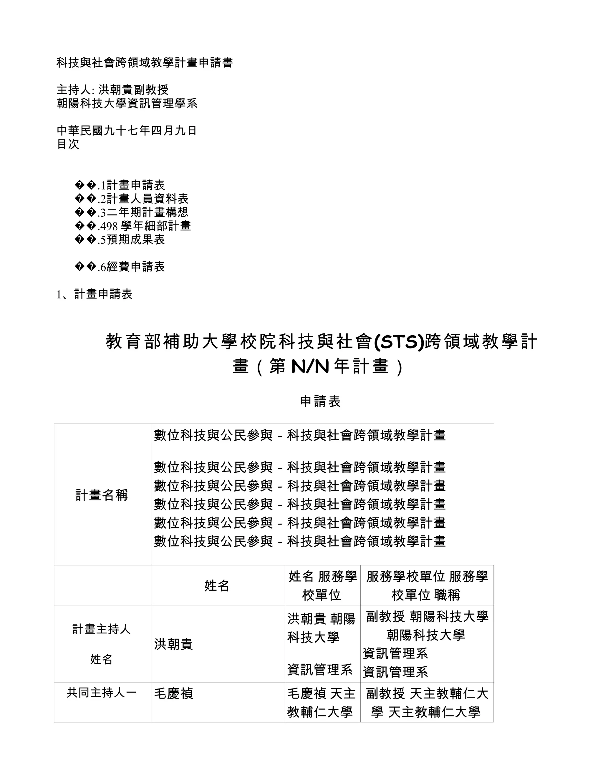 計畫人員資料表