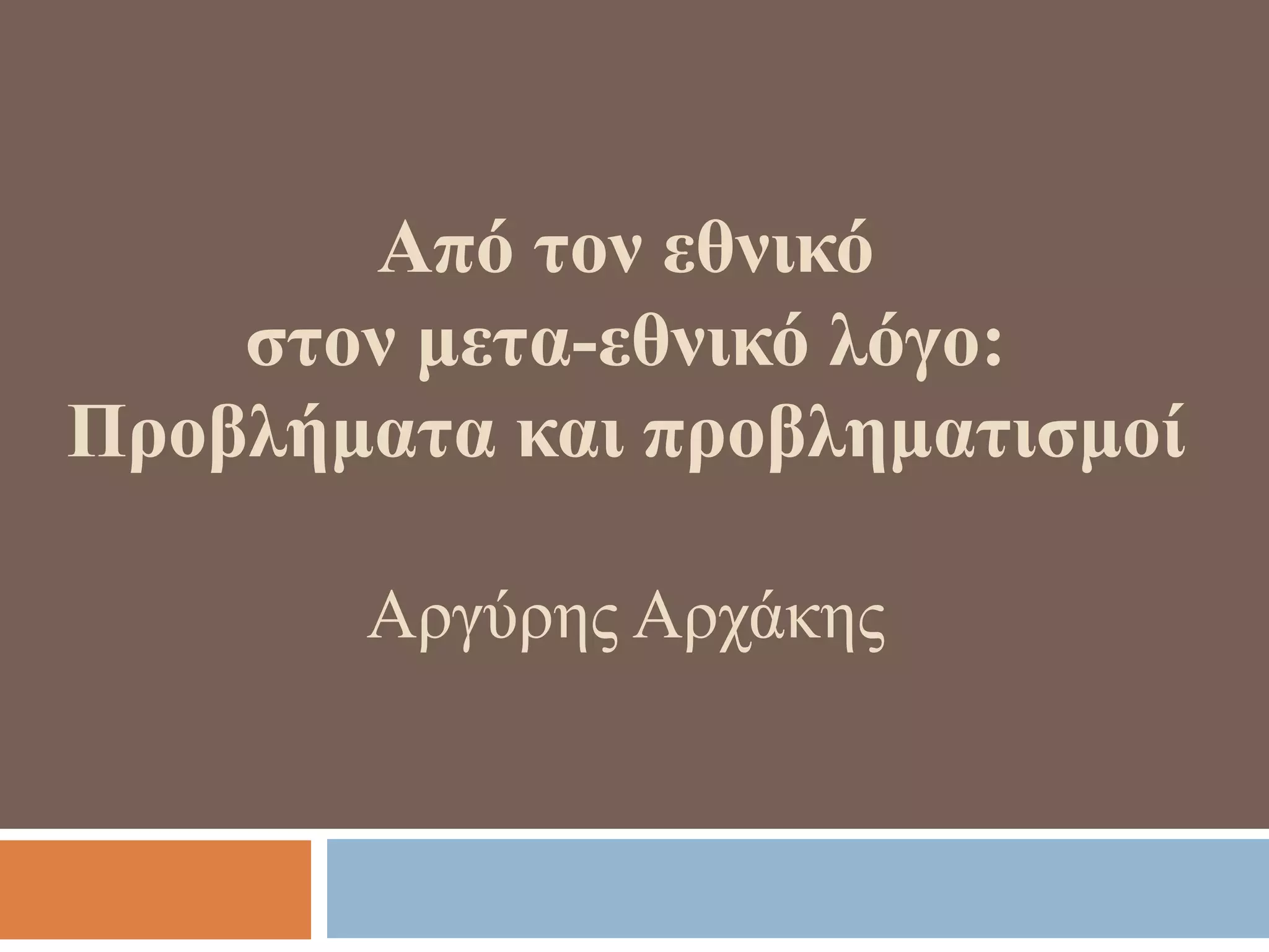 Από τον εθνικό στο μετα-εθνικό λόγο: προβλήματα και προβληματισμοί
