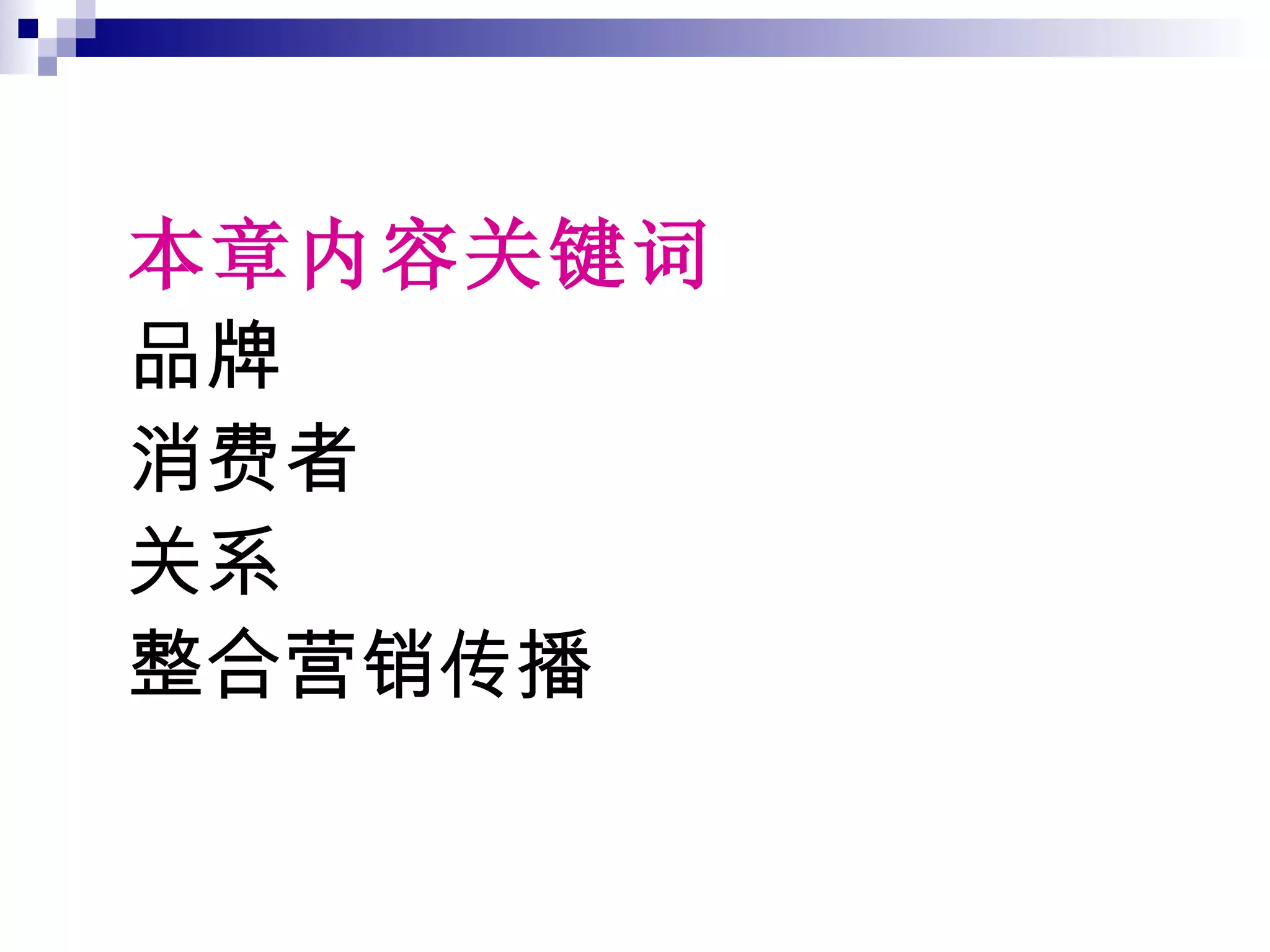 ( 3 )品牌与产品用途结合产品用途是就产品实际使用而言,是消费者与产品最基本的结合方式,易建立品牌与消费者之间的直线反应关系。 ( 4 )品牌与使用者结合 通过突出产品品质带来的特别承诺,使品牌与消费者的需求特征相统一。 ( 5 )品牌与产地结合 产地对某种类型的产品具有明显的形象暗示作用。 - 23.