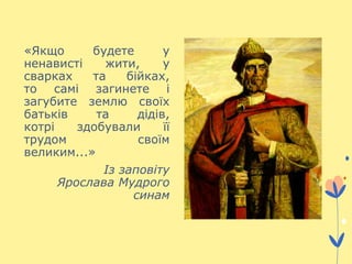 Зміст заповіту Ярослава Мудрого і його актуальність нині.