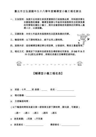 臺北市立弘道國中九十八學年度輔導室小義工報名辦法