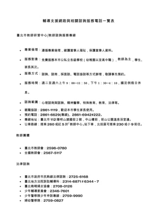 • 臺北市立教育大學特教諮詢專線:2389-6215