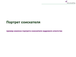 Выводы и рекомендацииОсновная масса кандидатов имеет текущую зарплат у в размере $ 1 000 – 2 500 и проживает в Москве Большинство кандидатов приходит через ресурс hh.ru – необходимо найти другие источники кандидатов , чтобы минимизировать риски Большинство кандидатов узнают об агентстве через рекламу в интернете . Интернет – самый эффективный ресурс для проведения рекламных кампаний Корпоративный сайт и рекомендации знакомых – главные факторы при принятии решения кандидатом о выборе кадрового агентства для сотрудничества. Необходимо постоянно поддерживать и обновлять корпоративный сайт Конкурентным преимуществом компании является наличие вакансий крупных компаний . Эту сильную сторону можно еще усилить путем привлечения новых вакансий крупных компаний Слабые стороны агентства – малая известность и не всегда положительное впечатление от первого контакта. Выход: рекламные интернет-кампании по продвижению бренда и тренинги для фронт-персонала Основные конкуренты агентства - Kelly Services, Ancor и Cornerstone . Необходимо проводить регулярный мониторинг деятельности этих компаний: ценовая политика, рекламная политика и т.д.