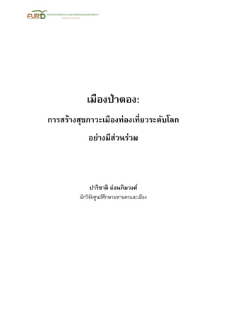 เมืองป่าตอง: การสร้างสุขภาวะเมืองท่องเที่ยวระดับโลก อย่างมีส่วนร่วม ปาริชาติ อ่อนทิมวงศ์ นักวิจัยศูนย์ศึกษามหานครและเมือง