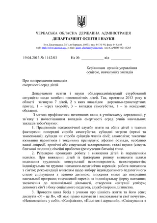 ситуацією щодо загибелі неповнолітніх дітей. Так, протягом 2013 року в