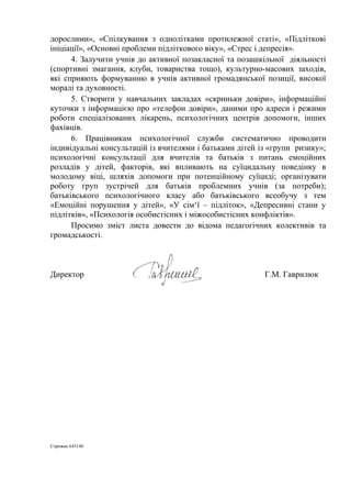1. Працівників психологічної служби взяти на облік дітей з такими