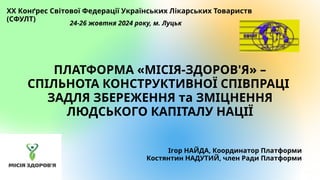 Платформа «МІСІЯ-ЗДОРОВ’Я» демонструє важливу роль турботи про здоров’я у формуванні здорового майбутнього України та покращенні її економічних перспектив і зміцнення національної безпеки України