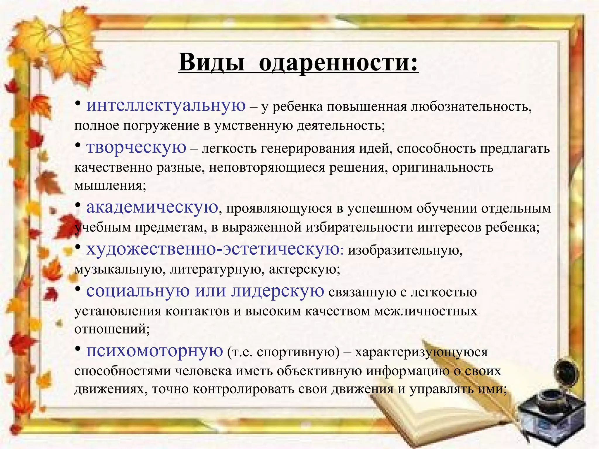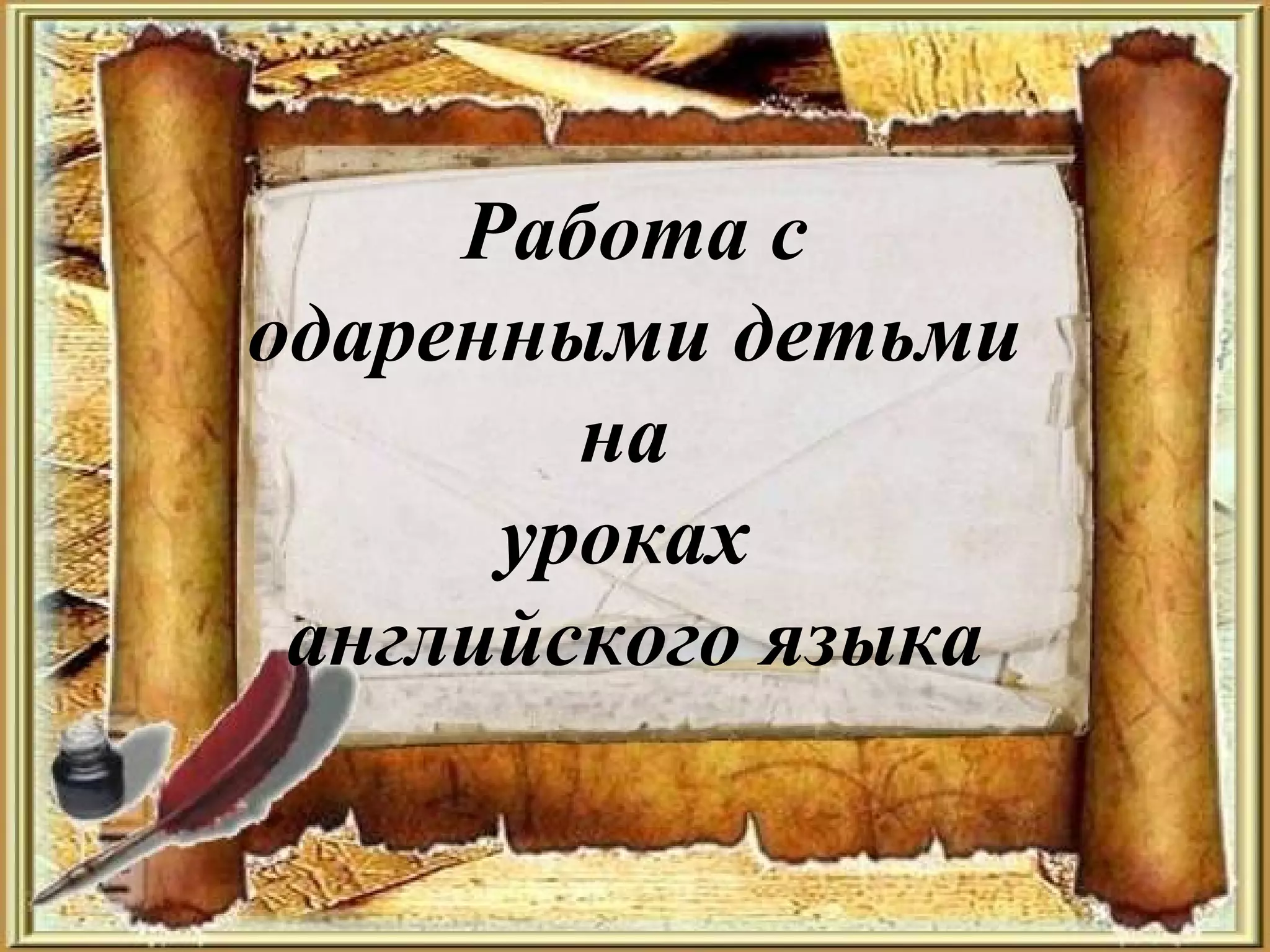 Документ рассматривает методы работы с одаренными детьми на уроках английского языка и выделяет различные виды одаренности, такие как интеллектуальная, творческая, академическая и другие. Основное внимание уделяется индивидуализации и дифференциации обучения, а также применению стратегий аудирования и чтения. В заключение предлагаются виды деятельности, способствующие развитию творческих способностей учащихся, такие как проектная работа и ролевые игры.