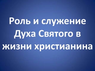 Документ рассматривает роль и служение Святого Духа в жизни христианина, подчеркивая, что Бог существует в трех лицах: Отец, Сын и Святой Дух, которые работают в единстве. Он детализирует участие Святого Духа в создании, жизни и служении Иисуса Христа, а также в процессе спасения людей. Текст приводит множество библейских свидетельств, подтверждающих эти утверждения.