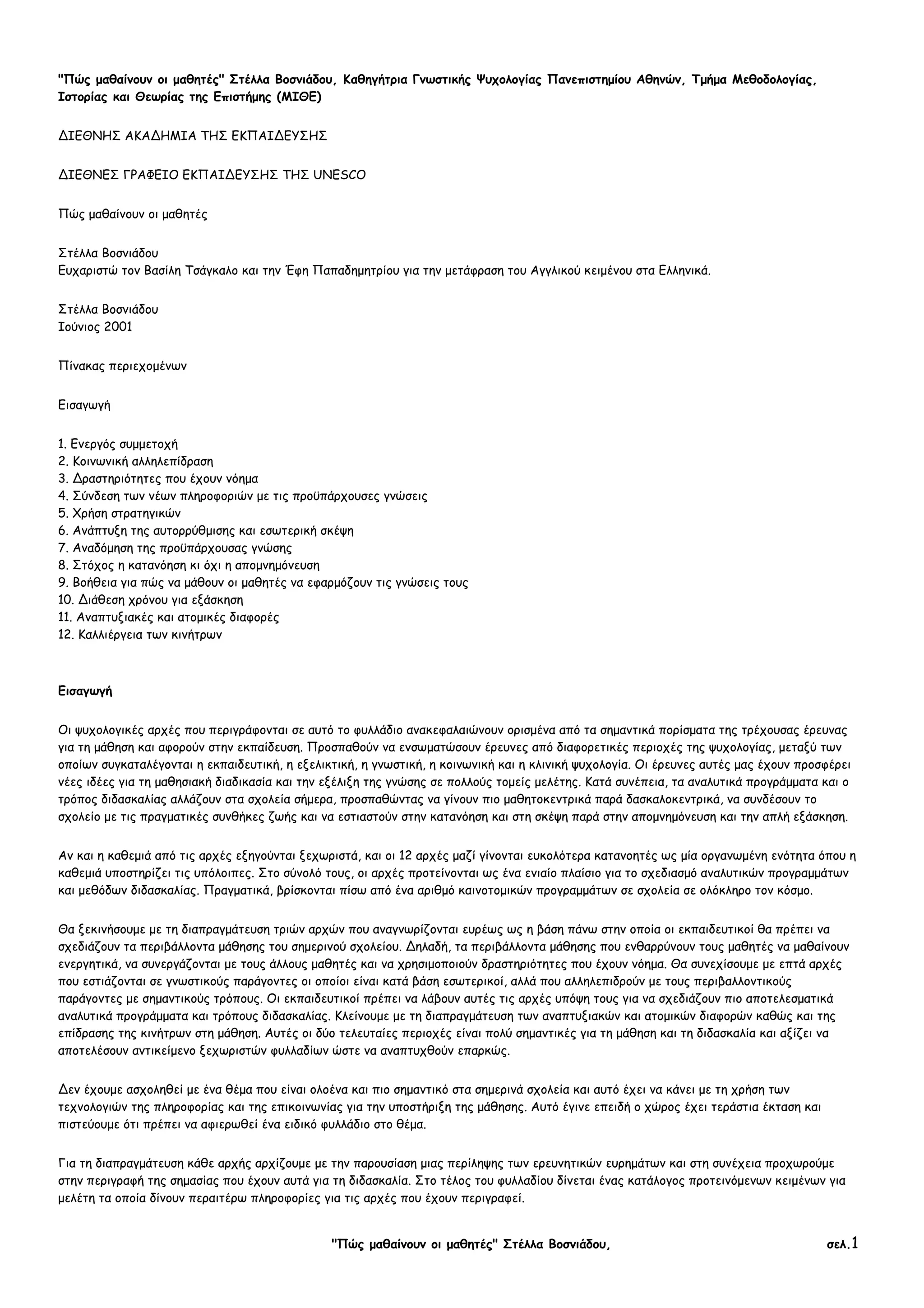 "Πώς µαθαίνουν οιµαθητές" Στέλλα Βοσνιάδου, σελ.1