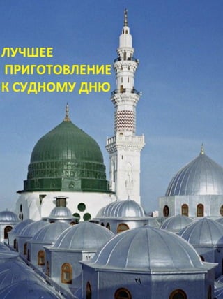 Документ представляет собой руководство по приготовлению к Судному дню, подчеркивающее важность добрых дел и праведности в жизни мусульман. Он охватывает различные действия и молитвы, которые повышают духовную ценность и обеспечивают награды от Аллаха. Автор акцентирует внимание на внутреннем намерении и соблюдении предписаний Ислама как ключевых условиях для принятия дел.