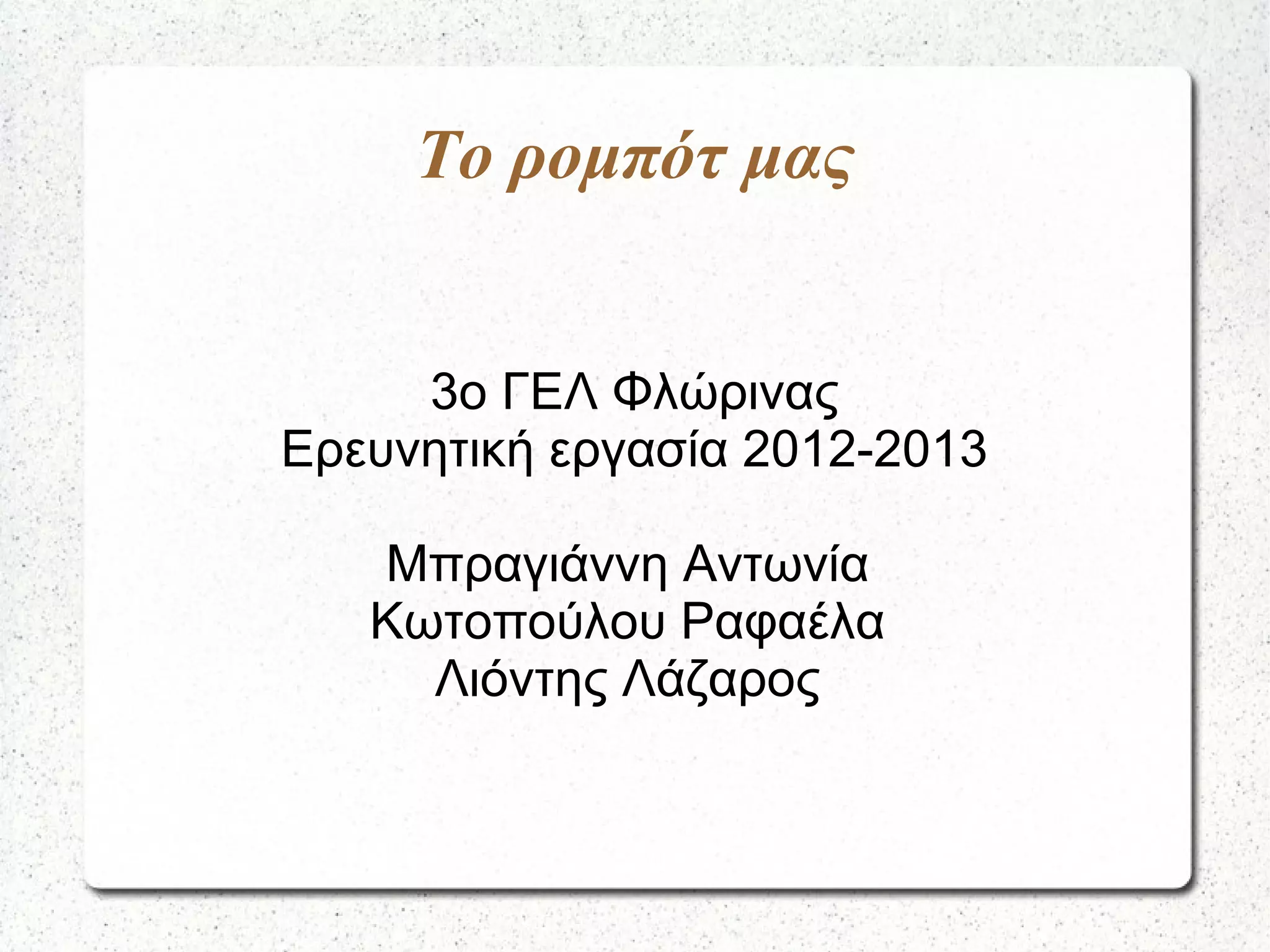 Τορομπότ έχει αισθητήρες με τους οποίους μπορούσε να καταλαβαίνει τα