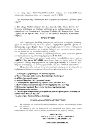 Σερρών για το σχολικό έτος 2019-2020 και ορισµού Επιτροπής αξιολόγησης