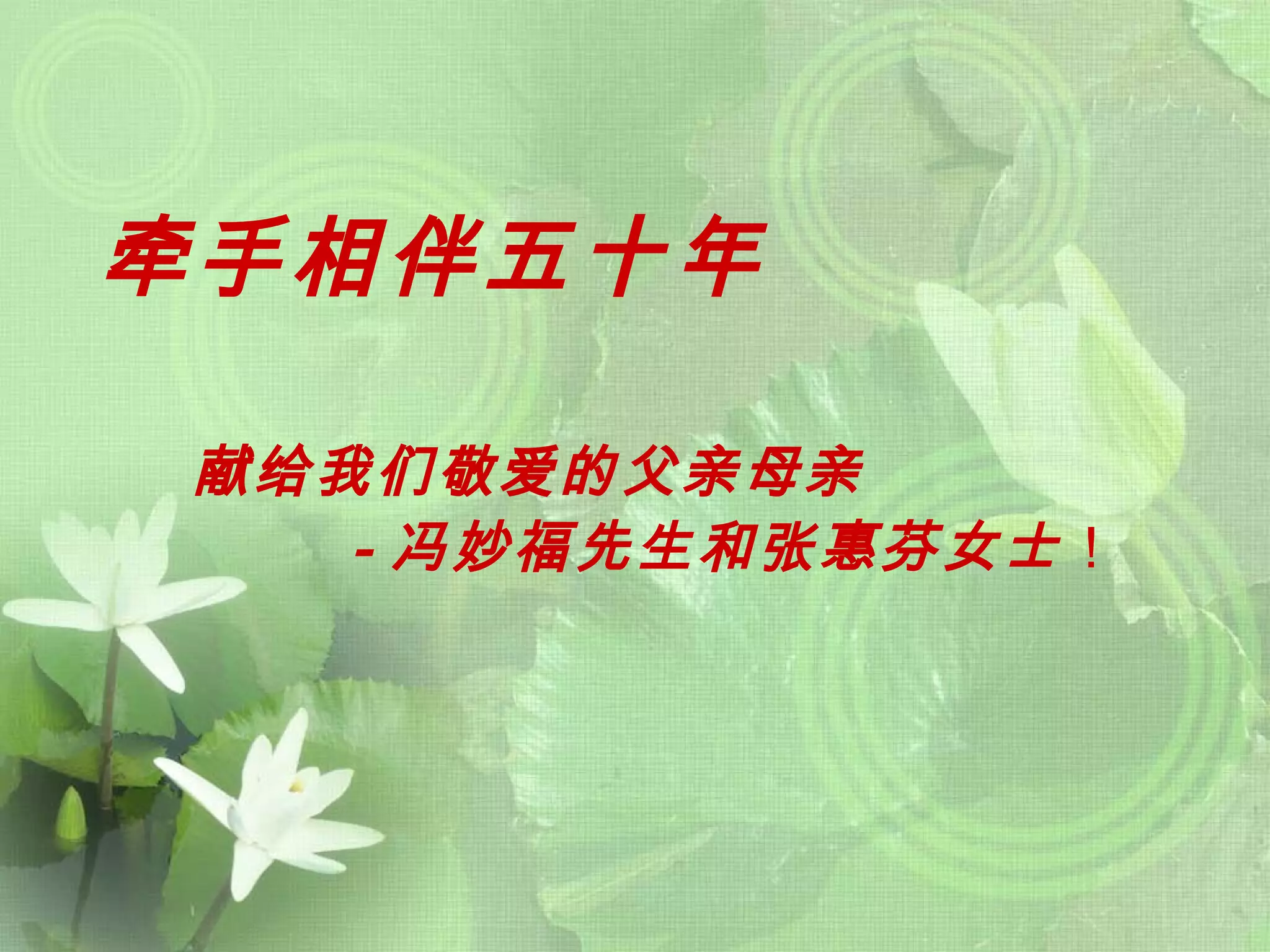 敬祝我们敬爱的父亲母亲金婚五十健康快乐 !