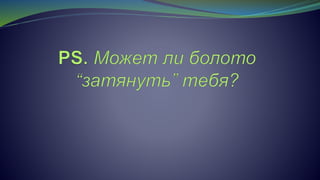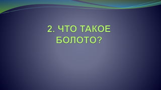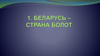 Документ состоит из лекции о болотах Беларуси, охватывающей их значение, типы, экосистемные функции и угрозы. Он предоставляет статистические данные о площади и состоянии болот, а также обсуждает их биоразнообразие и важность для экологии и сохранения ресурсов. Лекция подчеркивает необходимость охраны и восстановления болот, раскрывая их роль в поддержании климатического равновесия и сохранении пресной воды.