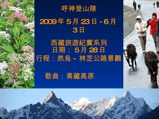 呼神登山隊在2009年西藏的旅程中经历了美丽的自然风光与惊险的道路挑战,从然乌到林芝的318国道展现了雪山、湖泊和花海的独特景色。波密镇以其优美的环境被称为中国的瑞士,途中还遇到藏族民众的热情与信仰,感受到西藏人民的善良和和平。整体旅程既令人陶醉也充满惊险,令人心醉难忘。