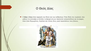 Ο Δίας ή Ζευς ήταν αρχηγός των θεών και των ανθρώπων. Ήταν θεός του ουρανού, που