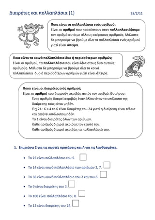 Διαιρέτες και πολλαπλάσια(1) 28/2/11