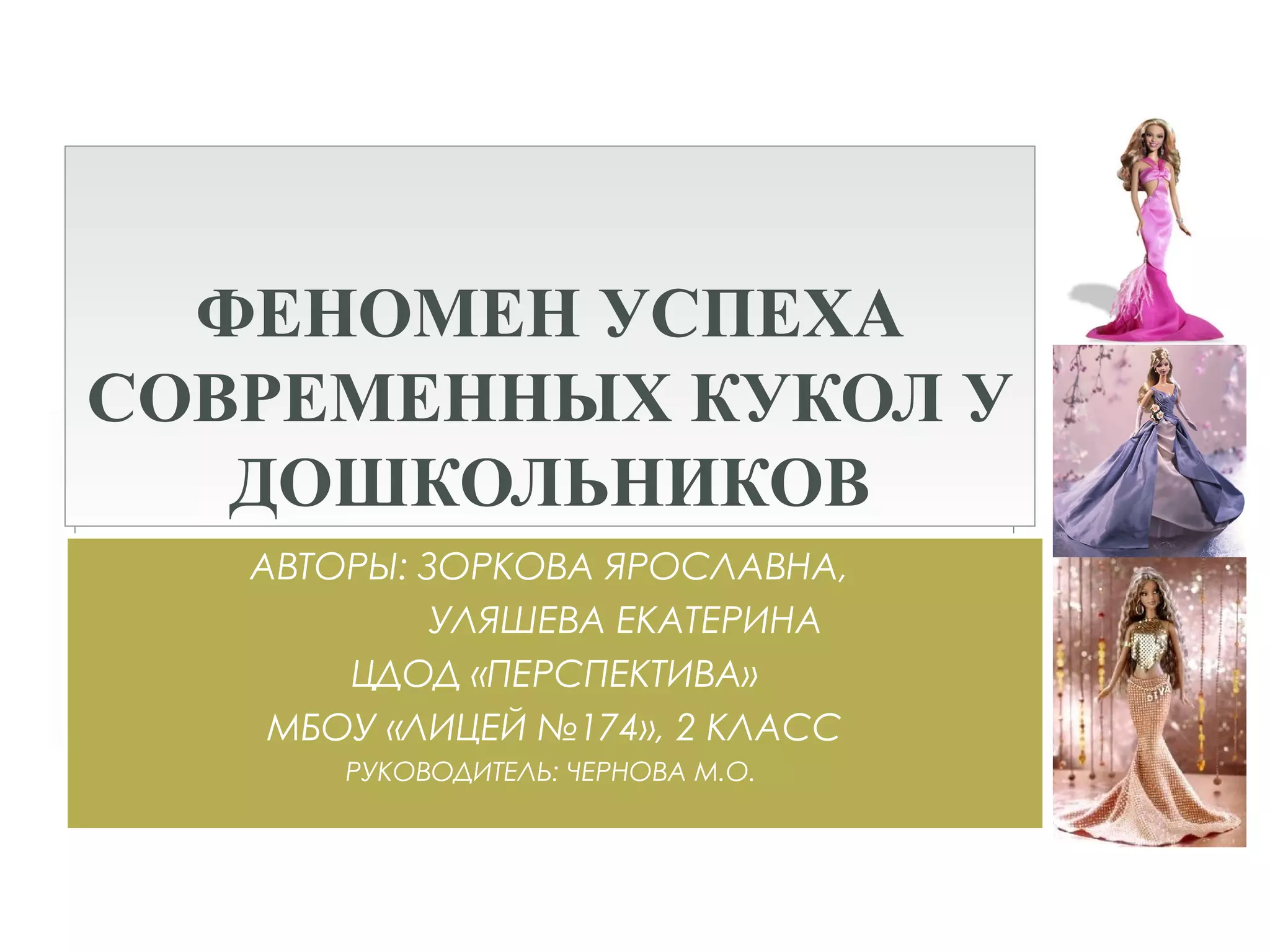 Документ исследует причину популярности современных кукол, таких как Барби, Братц и Винкс, среди дошкольников. Основная гипотеза заключается в том, что куклы привлекают детей благодаря своему внешнему виду и возможностью играть с ними как с подружками. Исследование выявляет, что Барби и Братц более популярны и часто представляют собой образ взрослых девушек, тогда как Винкс ассоциируются с подростковым образом жизни.