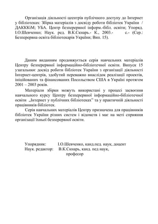Безперервна освіта бібліотекарів України; Вип. 15).