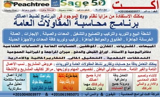 يتناول الوثيقة برنامج ERP المصمم لضبط الأعمال المحاسبية والإدارية بدقة واحترافية، ويوفر نظام إدارة متكامل يمكن الشركات من تنظيم وحفظ حساباتها وتحليل بياناتها المالية. البرنامج يدعم مجموعة متنوعة من الأنشطة مثل المقاولات والتوريدات والصيانة، بالإضافة إلى تقديم تقارير دقيقة عن المشاريع والتكاليف.