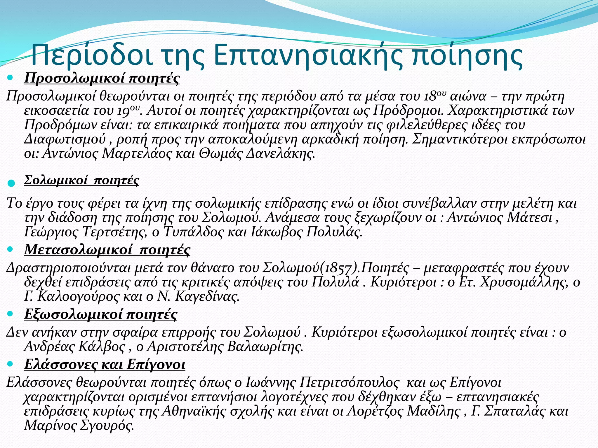 Προςολωμικού θεωρούνται οι ποιητϋσ τησ περιόδου από τα μϋςα του 18ου αιώνα – την πρώτη