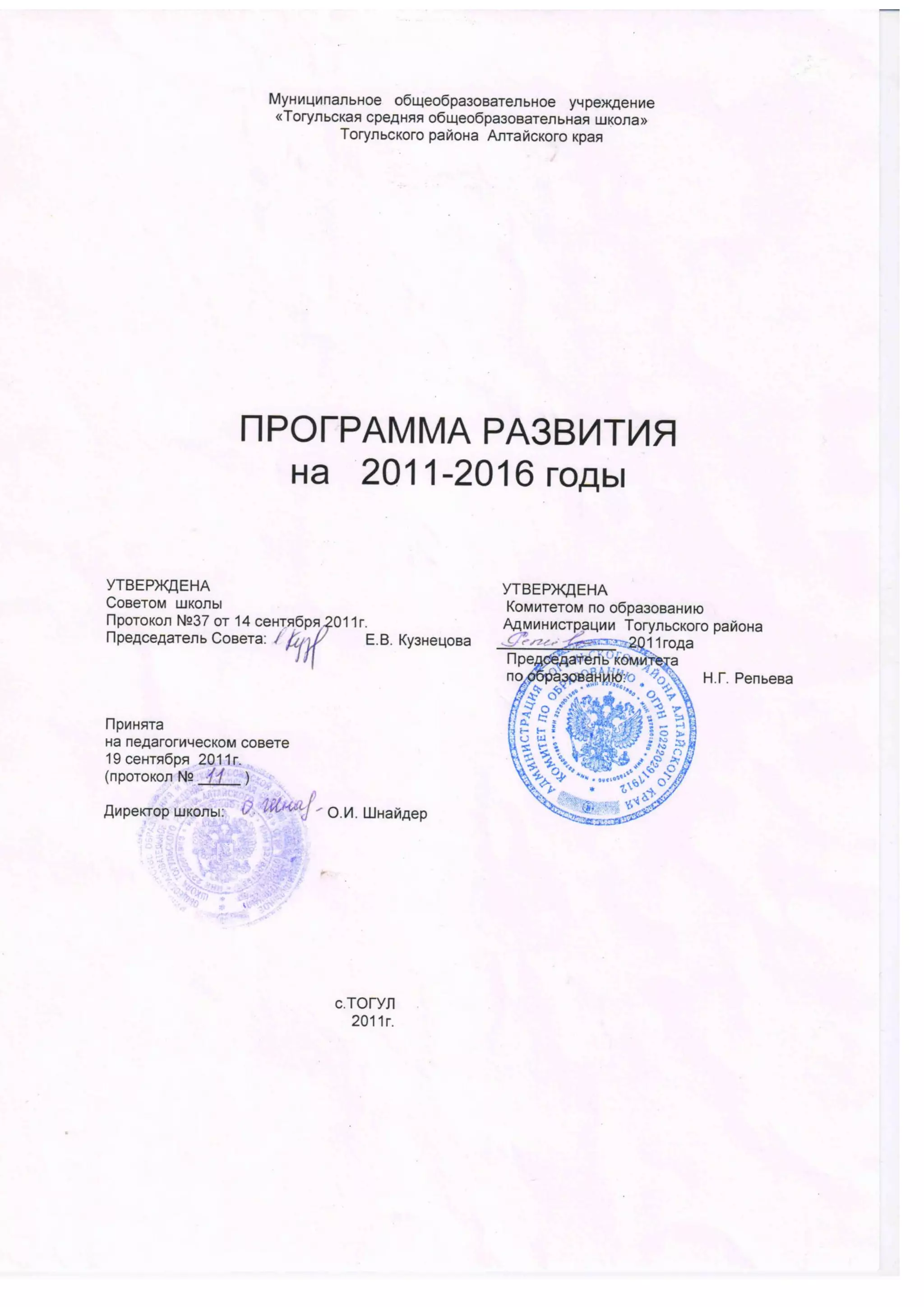 Программа развития МОУ 'Тогульская средняя общеобразовательная школа' на 2011-2016 годы направлена на повышение качества образования и создание инновационной образовательной среды. Основные задачи включают переход на новые образовательные стандарты, развитие индивидуальных образовательных маршрутов, внедрение современных технологий и улучшение материально-технической базы. Программа также учитывает изменения в социально-экономической среде и необходимость подготовки учащихся к жизни в условиях рыночной экономики.