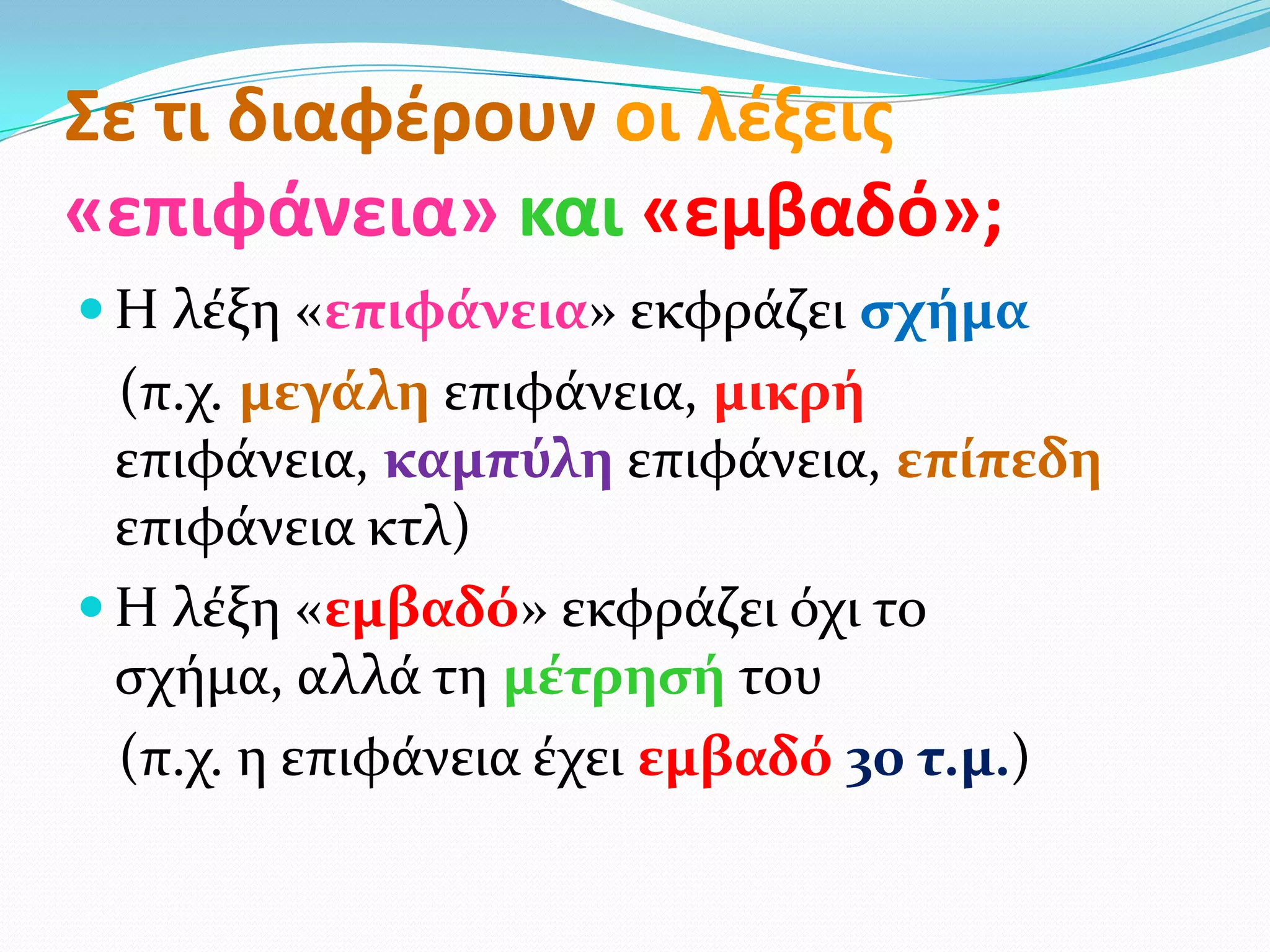 Η λέξη «επιφάνεια» εκφράζει ςχήμα