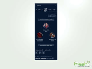 Документ описывает основные ошибки в веб-дизайне, такие как плохая структура и неудачный дизайн, и их влияние на лояльность пользователей и прибыль. Он предлагает рекомендации по оптимизации сайта, включая анализ запросов, улучшение юзабилити и адаптивный дизайн для различных устройств. Также рассматриваются способы повышения конверсии и важность веб-аналитики для успешного управления сайтом.