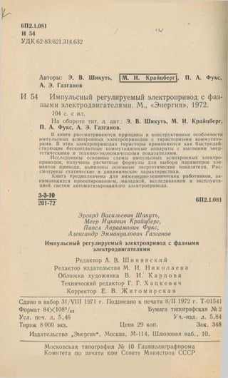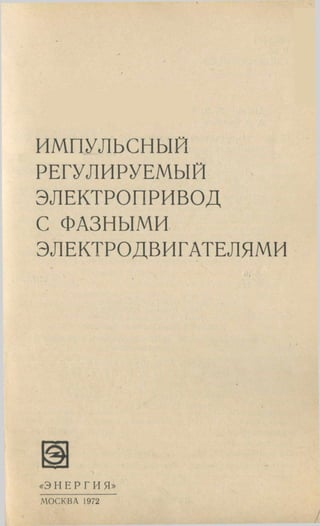 Документ описывает импульсные регулируемые электроприводы с фазными электродвигателями, разработанные в Москве в 1972 году. Рассматриваются принципы и конструктивные особенности этих электроприводов, включая применение тиристоров как высокоэффективных коммутационных устройств. Книга предназначена для специалистов, занимающихся проектированием и эксплуатацией автоматизированных систем электропривода.