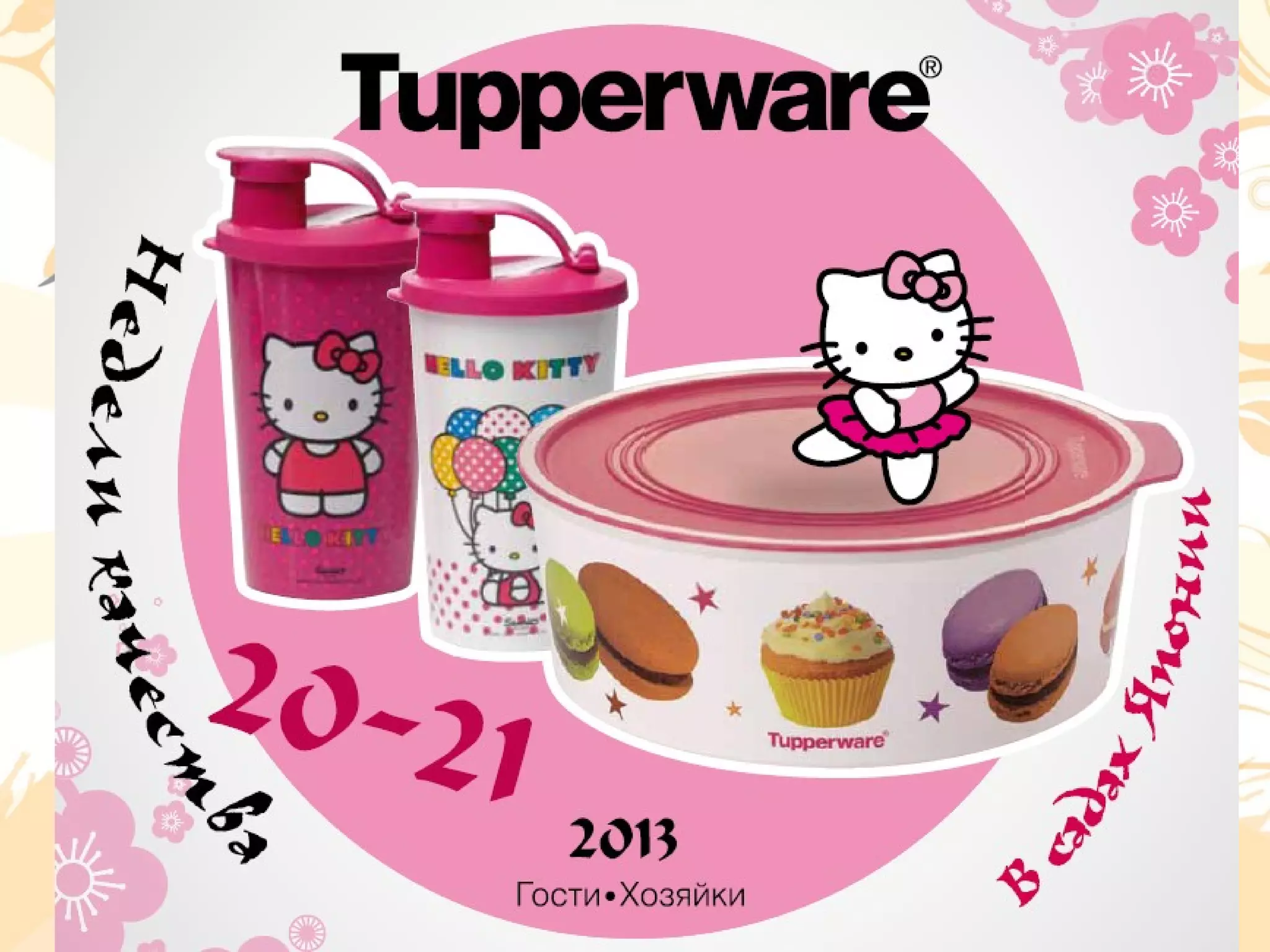 Документ предлагает различные подарки и специальные предложения от Tupperware для хозяйки и гостей, включая ланч-боксы и спортивные бутылки в стилях 'Хэллоу Китти'. Представлены разные уровни предложений с уникальными товарами и скидками, позволяющие покупать экосумки, наборы стаканов и посуду с выгодой. Также упоминаются многоразовые китайские палочки и различные контейнеры, акцент на экологичности и дизайне продукции.