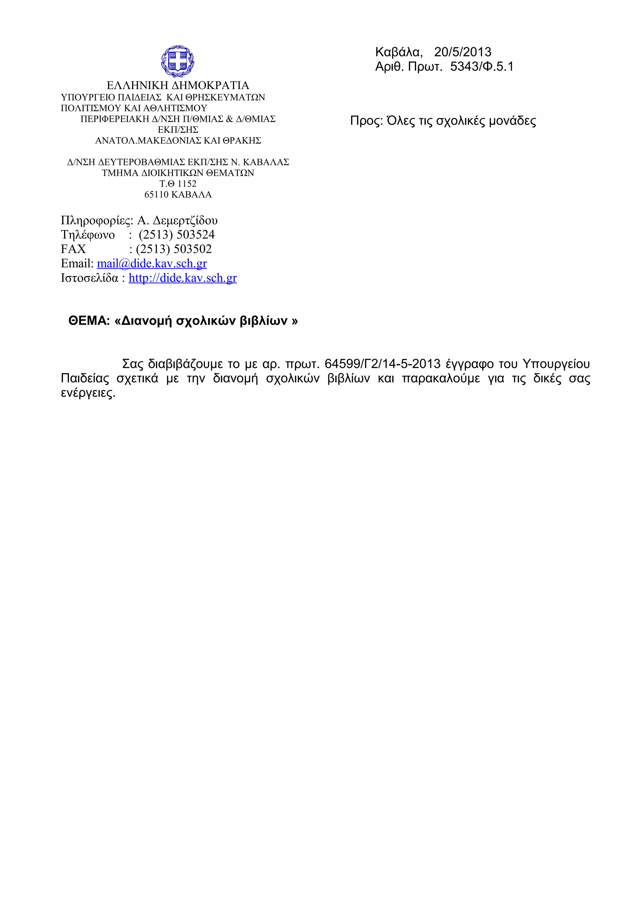 Παιδείας σχετικά με την διανομή σχολικών βιβλίων και παρακαλούμε για τις δικές σας