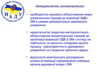 Презентація до захисту кандидатської дисертації "Концептуальні засади взаємодії органів державної влади та засобів масової інформації в умовах демократизації державного управління в Україні"