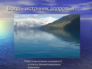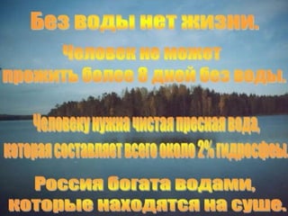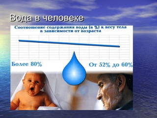 Документ описывает значимость воды для здоровья человека, перечисляя её функции, такие как транспорт питательных веществ и поддержание температуры тела. Также рассматриваются роль кальция и других компонентов воды, а также методы фильтрации и озонирования для очистки воды. В заключение подчеркивается, что процесс озонирования безопасен для человека.