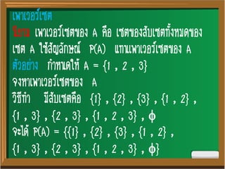 เพาเวอร์เซต 1. 2. เพาเวอร์เซต