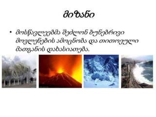 მიწისძვრა, წვიმა, ცუნამი, მეწყერი, ვულკანი,