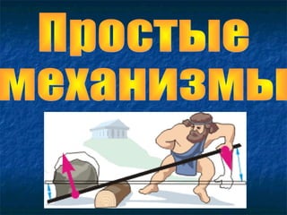 Документ обсуждает простые механизмы, которые помогают людям выполнять тяжелую работу, используя различные устройства, такие как рычаги, блоки и наклонные плоскости. Он объясняет, как эти механизмы обеспечивают выигрыш в силе, позволяя пользоваться меньшими усилиями для преодоления больших нагрузок. В конце упоминается, что использование простых механизмов приводит к компромиссу между силой и расстоянием.