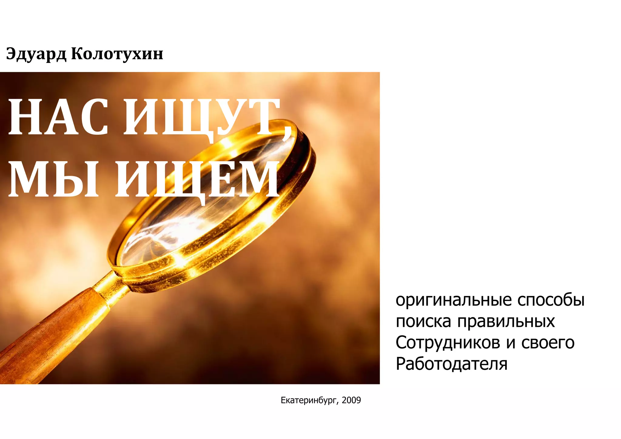 Книга Эдуарда Колотухина 'Нас ищут, мы ищем' представляет оригинальные и практические методы рекрутинга и поиска сотрудников, основанные на реальных примерах из России и зарубежья. Она акцентирует внимание на важности правильного подбора кадров как ключевого фактора успеха компании, а также предлагает различные стратегии для привлечения квалифицированных специалистов. Авторы отмечают, что современные компании должны активно искать таланты, а не дожидаться, когда кандидаты сами найдут их.